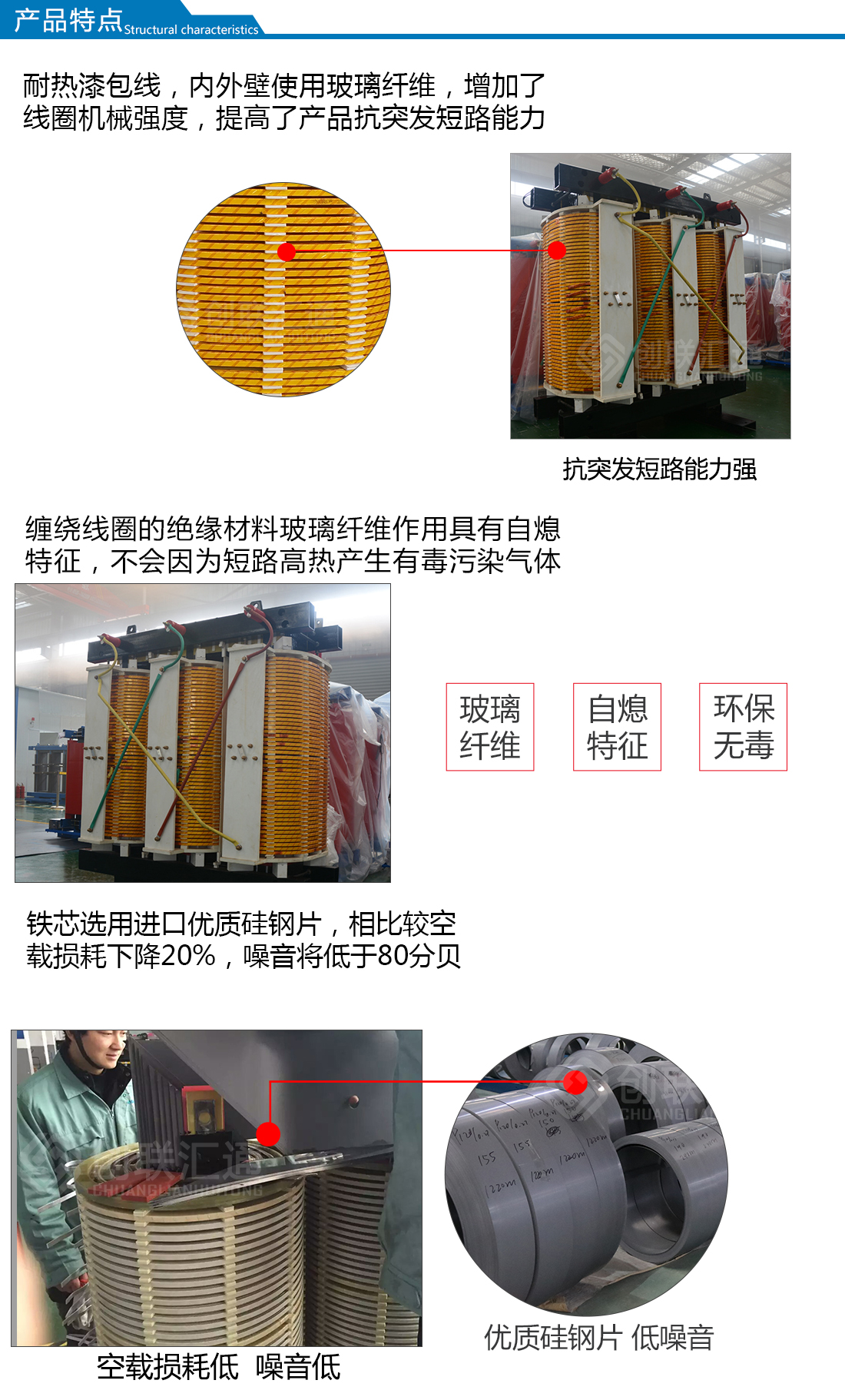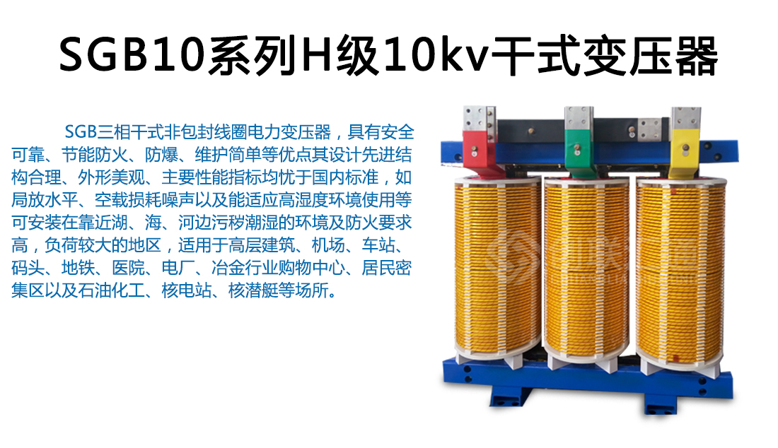 SG(B)10系列H級(jí)絕緣干式變壓器采用優(yōu)質(zhì)環(huán)保材料,先進(jìn)的生產(chǎn)檢測(cè)設(shè)備按嚴(yán)格的工藝生產(chǎn)而成,具有高性能、高安全、承受熱沖擊能力強(qiáng)等特點(diǎn),它適用于防火要求高、負(fù)荷波動(dòng)大以及污穢潮濕的惡劣環(huán)境中。如:高層建筑、商業(yè)中心、住宅小區(qū)、醫(yī)院、化工廠(chǎng)、核電站、船舶及其它安全性要求防火、防爆、防潮的配電網(wǎng)絡(luò)與工礦企業(yè)供配電系統(tǒng)等重要或特殊環(huán)境場(chǎng)所。
