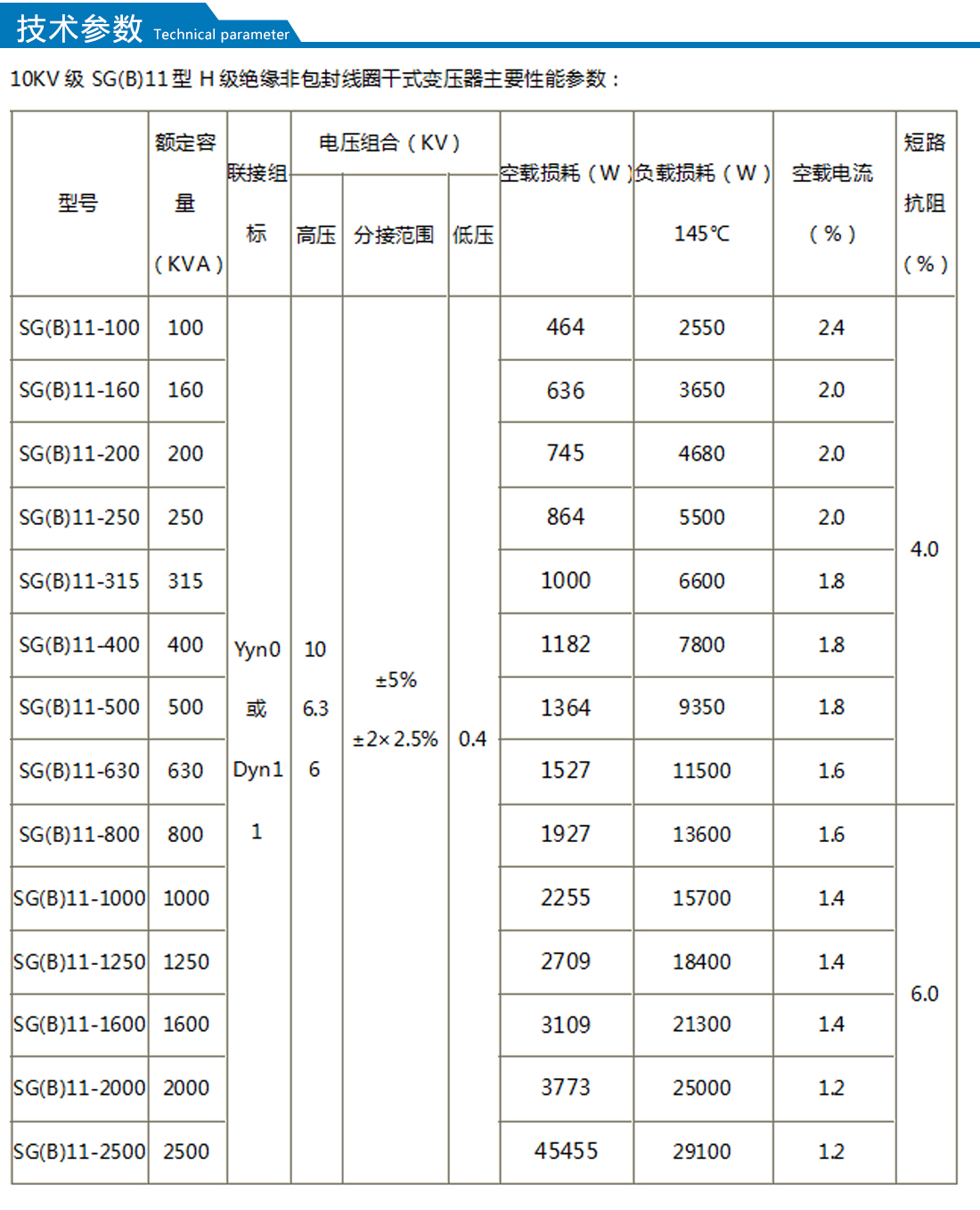SG(B)11系列H級(jí)絕緣干式變壓器采用優(yōu)質(zhì)環(huán)保材料,先進(jìn)的生產(chǎn)檢測(cè)設(shè)備按嚴(yán)格的工藝生產(chǎn)而成,具有高性能、高安全、承受熱沖擊能力強(qiáng)等特點(diǎn),它適用于防火要求高、負(fù)荷波動(dòng)大以及污穢潮濕的惡劣環(huán)境中。如:高層建筑、商業(yè)中心、住宅小區(qū)、醫(yī)院、化工廠、核電站、船舶及其它安全性要求防火、防爆、防潮的配電網(wǎng)絡(luò)與工礦企業(yè)供配電系統(tǒng)等重要或特殊環(huán)境場(chǎng)所。