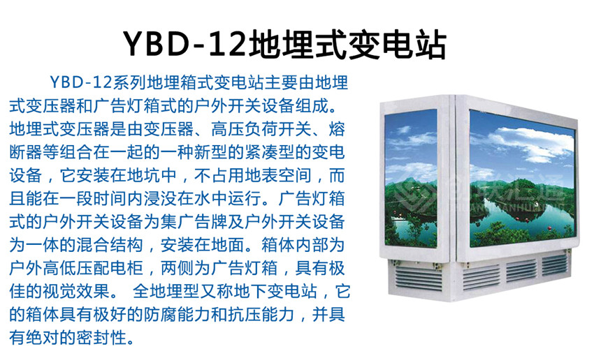 YBD-12系列地埋箱式變電站(簡稱地埋式箱變),是在充分研究和探討現(xiàn)代城市建設(shè)和管理的基礎(chǔ)上,新開發(fā)出的新一代箱式變。其主體部分或全部埋入地下,占地很少,甚至不占地,視覺效果非常好,有效解決了城市用地緊張和城市牛皮癬的矛盾,與周邊環(huán)境和諧統(tǒng)一,備受廣大專家和用戶的推崇。地埋箱式變電站是指該箱式變電站的成套裝置全部安裝于一個(gè)全密封的箱體內(nèi)部并把整體設(shè)制于地平面以下,它和地面上箱式變電站,內(nèi)部設(shè)備是相同的,同樣是由10KV輸入電壓經(jīng)變壓器降為400/220V配電電壓再送配至使用負(fù)荷點(diǎn),可用于環(huán)網(wǎng)配電系統(tǒng),也可作為放射式電網(wǎng)終端供電的變電站。這種全地埋型又稱地下變電站,它的箱體具有極好的防腐能力和抗壓能力,并具有絕對的密封性。