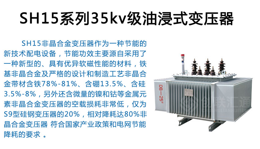 SH15非晶合金變壓器作為一種新一代節(jié)能產(chǎn)品,可以普遍適用于住宅小區(qū)、學(xué)校、工礦企事業(yè)單位以及社會(huì)公共設(shè)施??稍趹魞?nèi)(外)使用,容量在315kVA 及以下時(shí)可安裝在桿上,海拔高度不超過(guò)1000m。